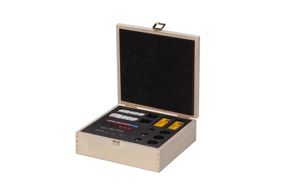 The more sensitive the product, the more important it is to have stable packaging, which should not only guarantee safe transport but also an attractive presentation. This is why we attach great importance to our tool cases with precisely fitting foam or cork inserts that enclose your product perfectly. Our toolboxes are of course also available with personalised engravings and finishes.